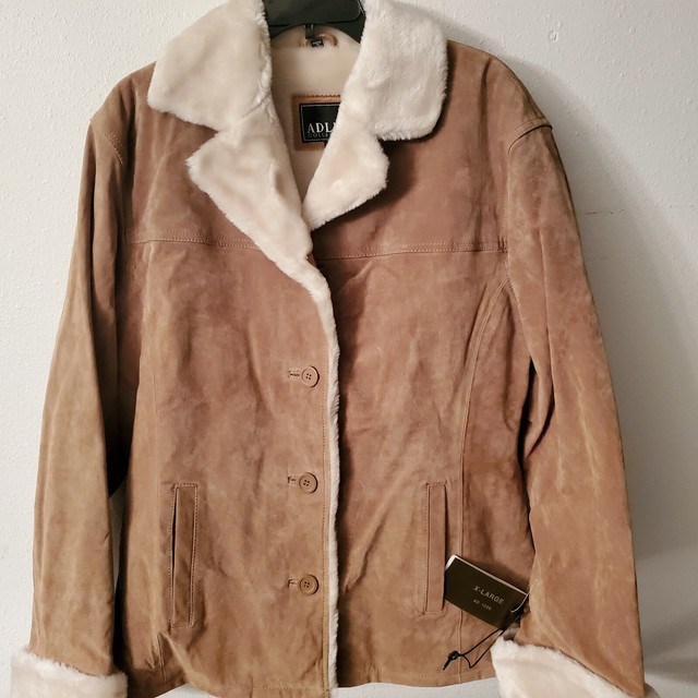 Adler women's large suede jacket wheat hooded faux fur lined leather coat l.